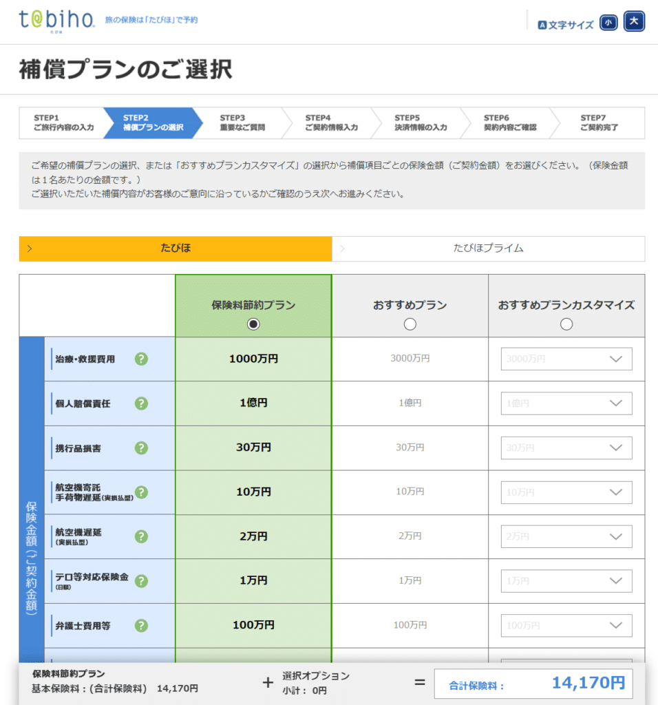 ジェイアイ傷害火災保険株式会社が提供する海外保険「tabiho」で、実際にタビホで1ヶ月間の保険料は現時点で14,170円でした。