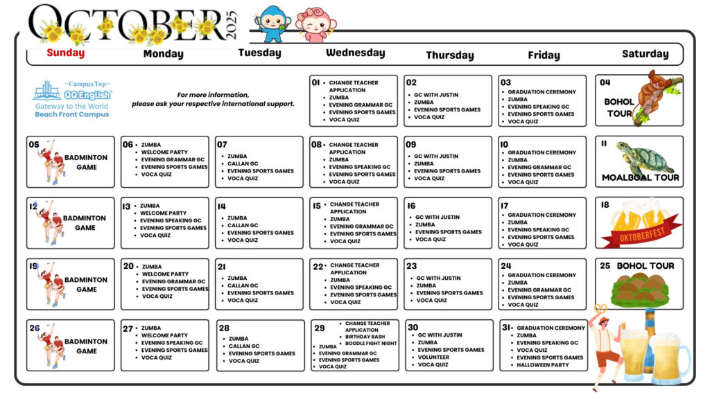 【語学学校QQ English ビーチフロント校】オクトーバーフェスト開催&最新情報(2025年10月)
