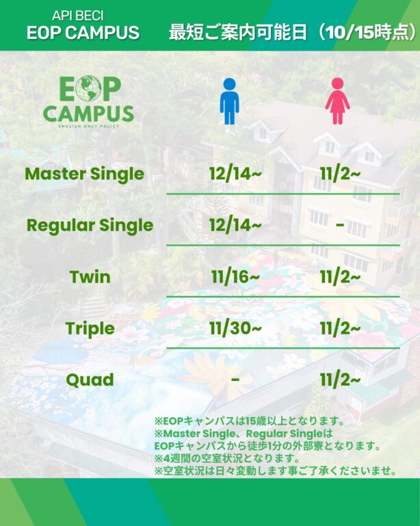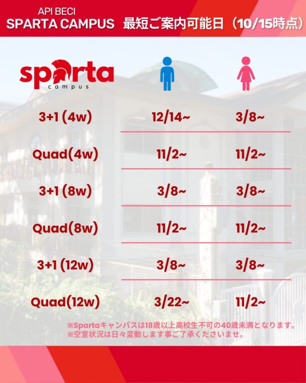 【語学学校API BECI The Spartaキャンパス】最新空室情報(2025年10月更新)