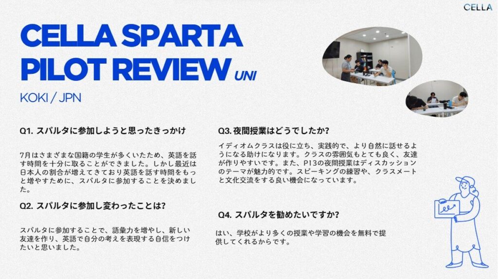 スパルタプログラムに参加した日本人学生からのレビューも届いています。