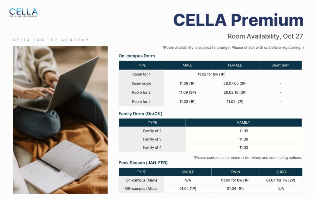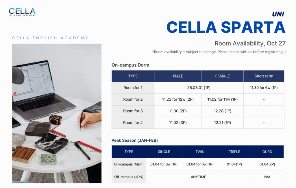 【語学学校CELLA uniキャンパス】最新空室情報(2025年10月第4週)