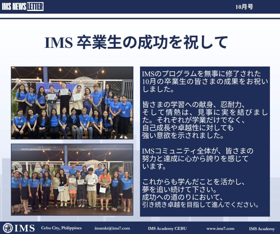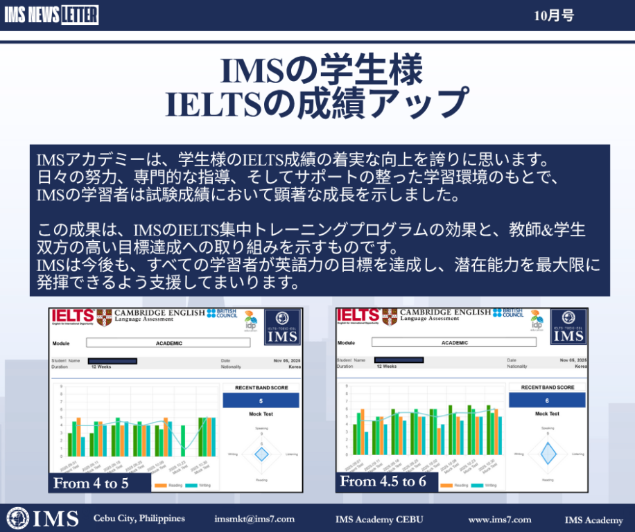 【語学学校IMS】10月最新ニュースレターと国籍比率アップデート