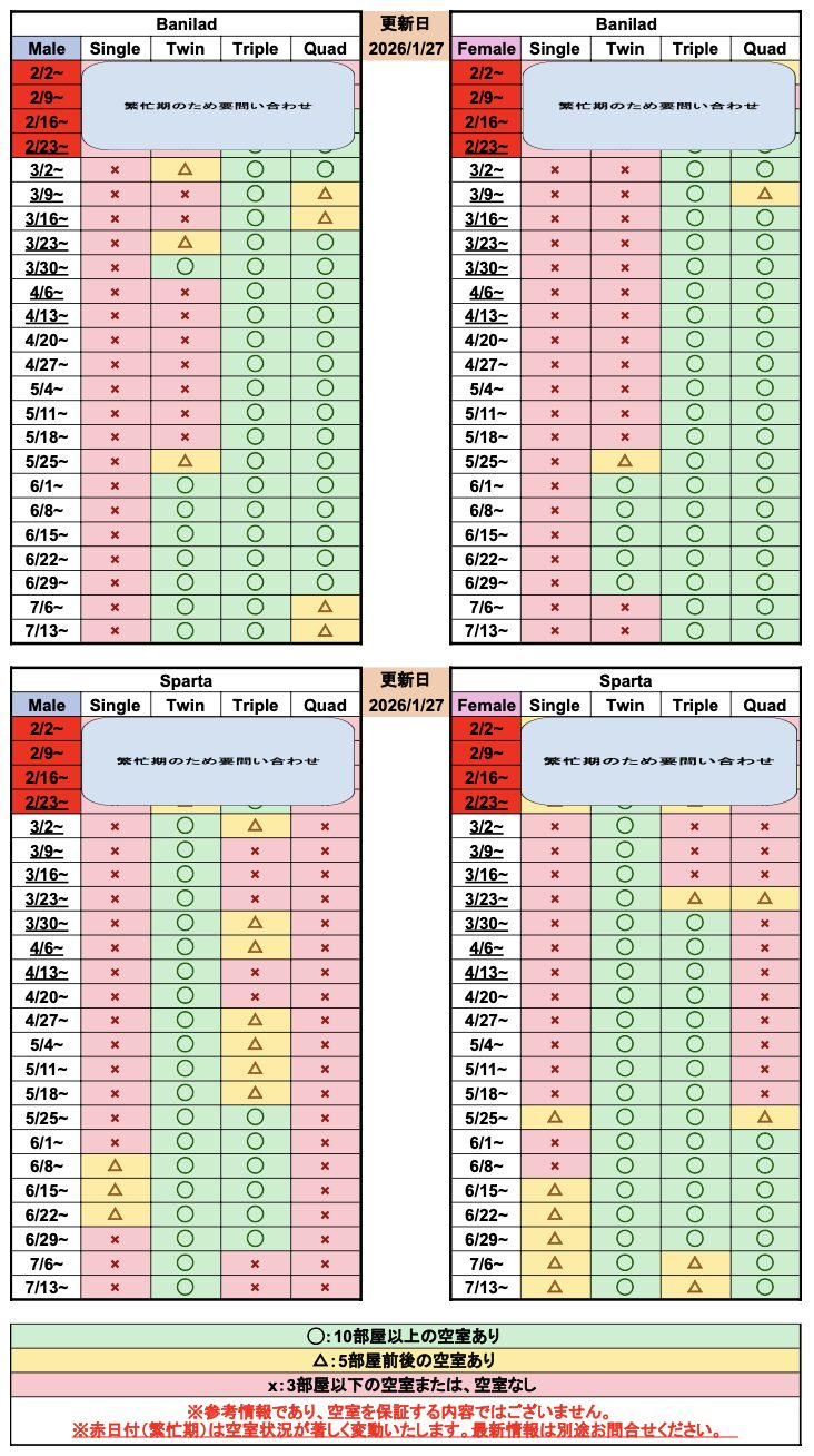 学校の空室状況および国籍比率は随時変動します。特に繁忙期は空室の動きが早いため、早めの確認がポイントです。
