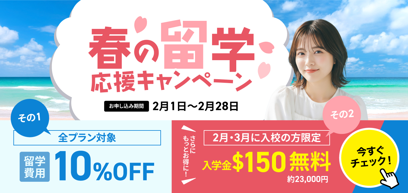 • お申し込み時に「春の留学応援キャンペーン」とメモ欄に記載