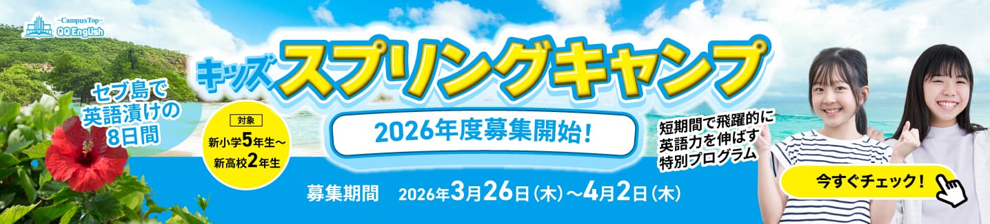 【QQ English ビーチフロント校】2026年春 キッズキャンプ参加者募集中 セブ島ビーチフロント校