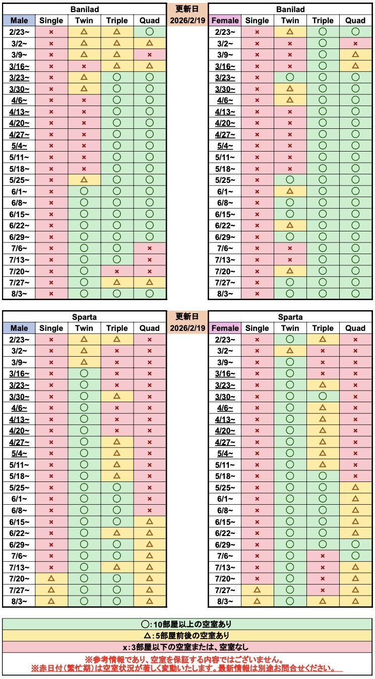 • 繁忙期は空室が変動しやすいため、早めの登録・確認が安心です