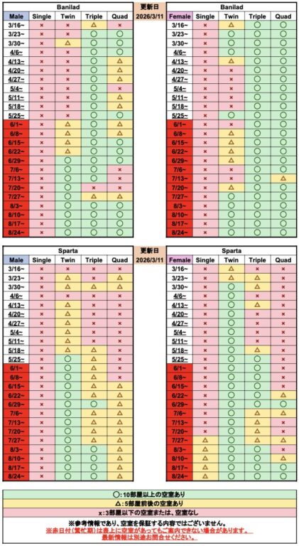 CGアカデミーの空室状況および国籍比率は随時更新されています。特に繁忙期は部屋の空きが日々変動するため、検討中の方は最新状況を個別にお問い合わせいただくことをおすすめします。