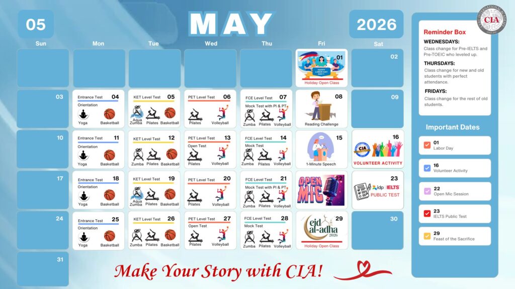 ホリデー期間中の祝日(12月24日、25日、30日、31日、1月1日)も、午前中に4コマのグループクラス(オープンクラス)が開講されます。休暇中も学習のリズムを崩さずに過ごせるのがCIAの特徴です。