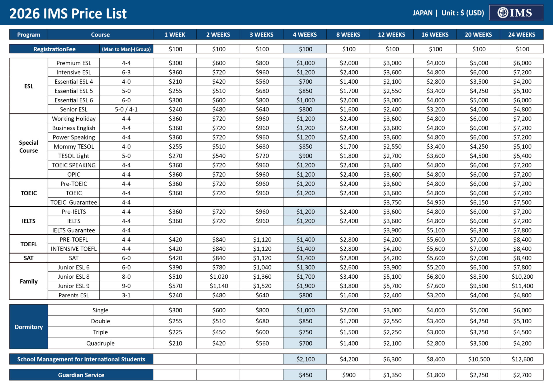 【IMS】SAT・TOEFL対策コース料金表公開