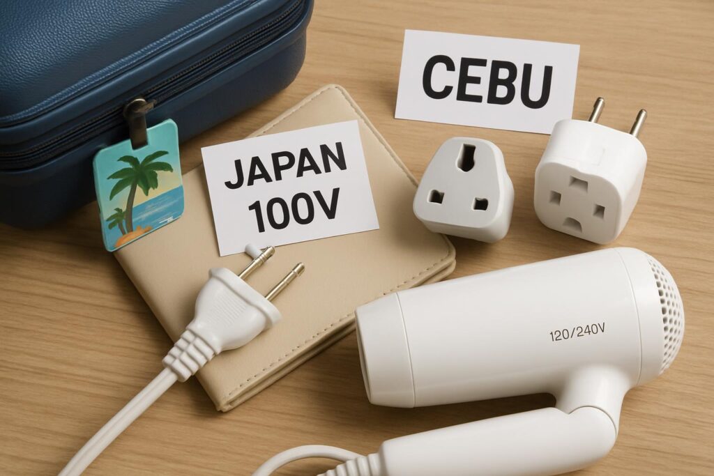 セブ島で日本の電化製品を使うには、プラグの形状と電圧の違いに対応する必要があります。