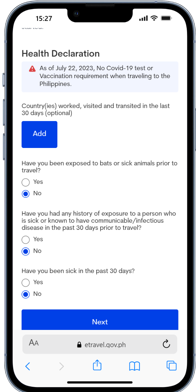 / e-travel 健康情報の入力
