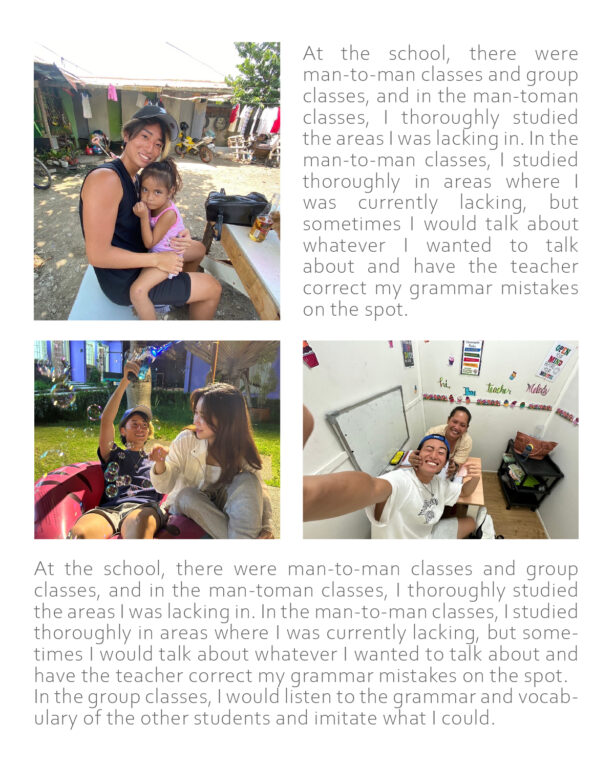 「マンツーマンで自分の弱点を徹底的に潰し、グループクラスでは他の学生の表現を模倣することに徹しました。3ヶ月目を過ぎた頃から、英語に対する恐怖心が消え、自然と口から言葉が出るようになりました」と振り返ります。厳しい学習環境であっても、同じ目標を持つ友人や親身な講師の支えがあることで、限界を突破できるのがフィリピン留学の醍醐味です。