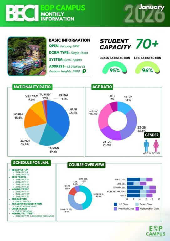 実際に、多国籍な学生が集まる人気校「API BECI EOP CAMPUS」の2026年1月の統計データを見ると、その多様な層がはっきりと分かります。