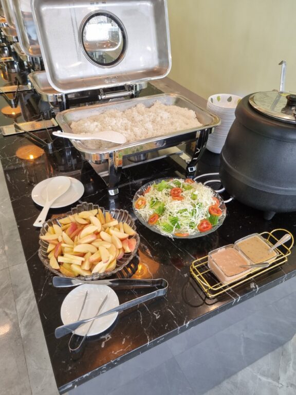 食事はビュッフェスタイルで提供され、様々な料理から自由に選ぶことができます。