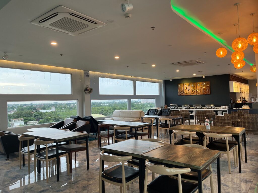 食堂は明るく広々とした空間で、リラックスして食事を楽しむことができます。